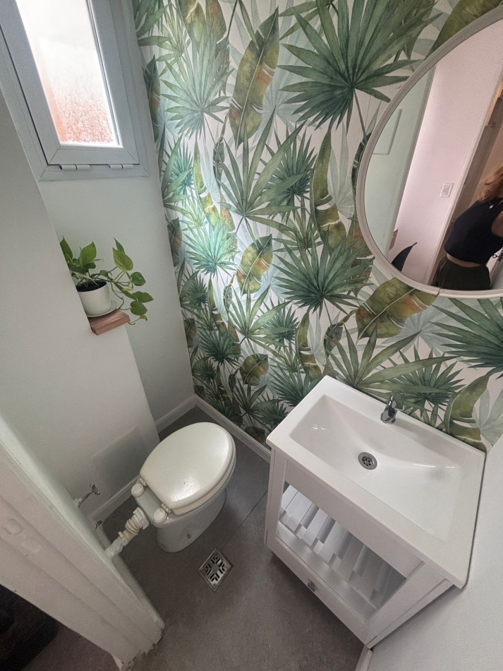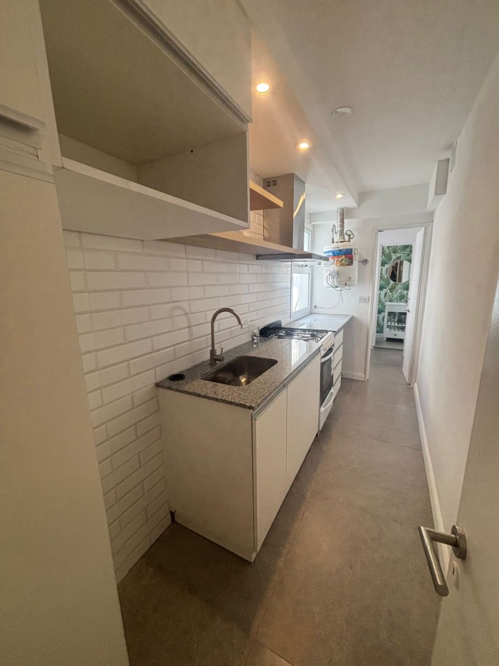 Cocina separada con muebles a medida, incluye termo a gas Escorial, Cocina Florencia, lugar para heladera, conexión y lugar para lavarropas, continuando un escritorio y toilette con ventilación natural.