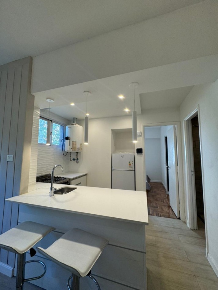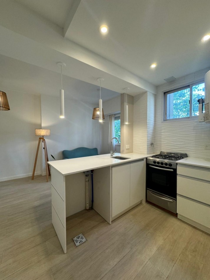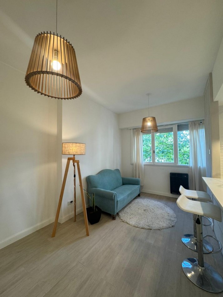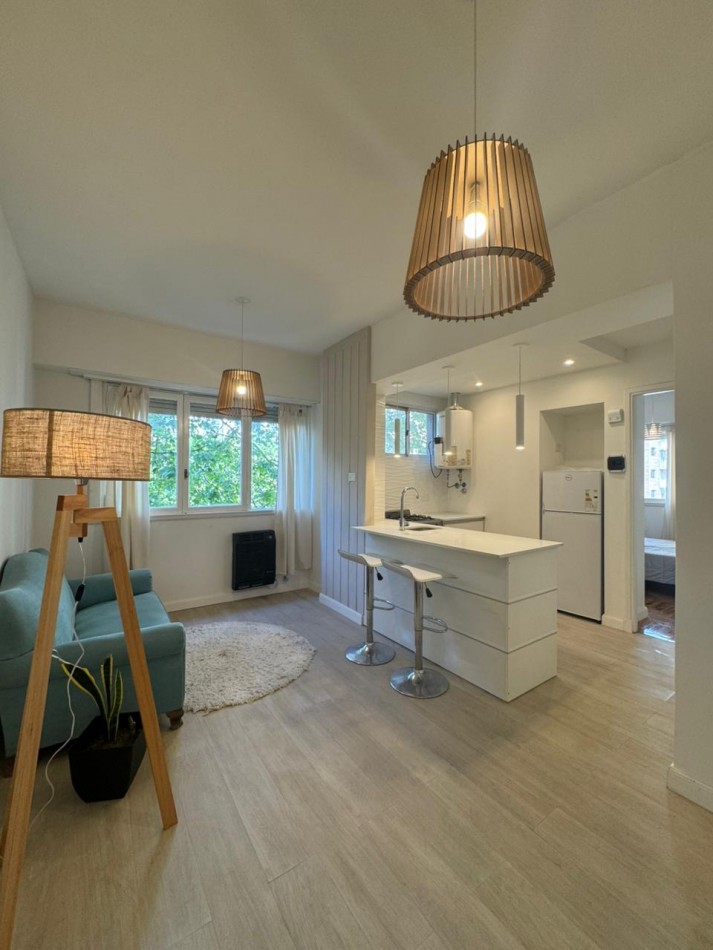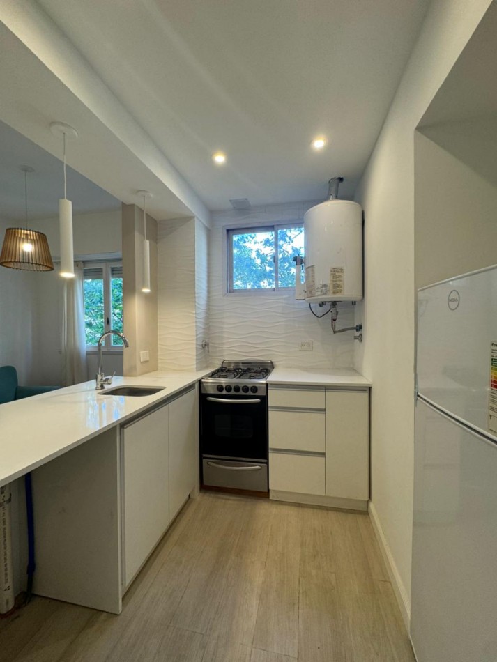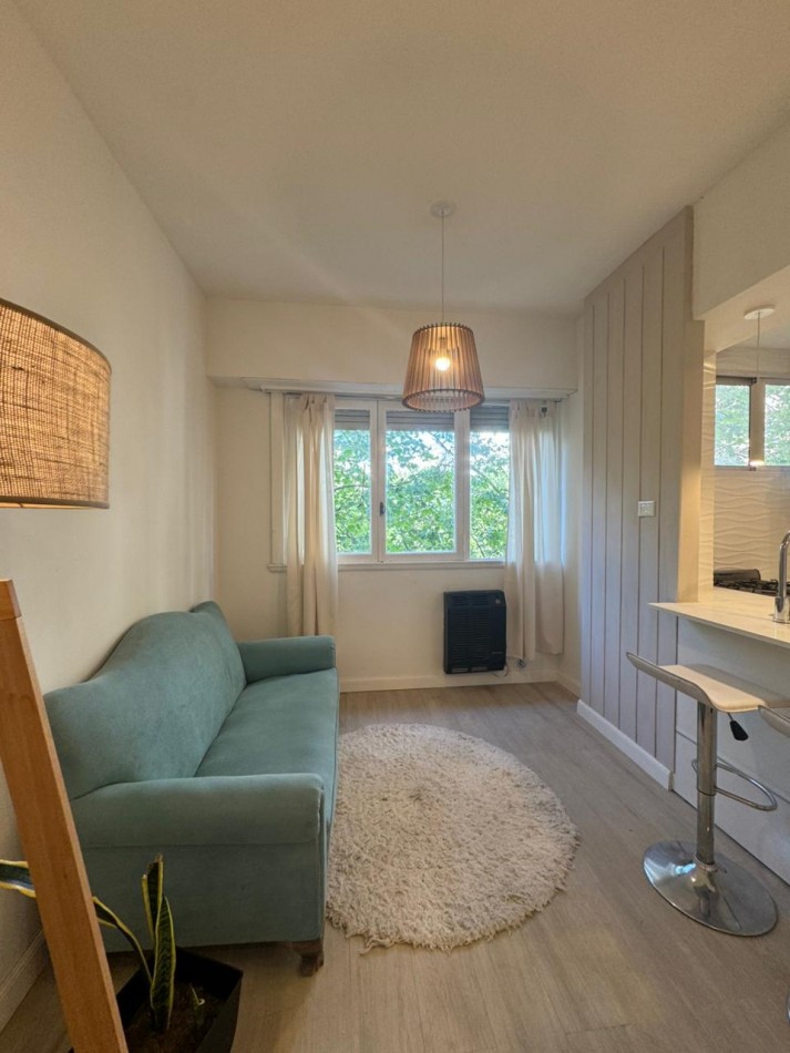 Cocina integrada, con living y sillón, habitación separada, con vista a la calle arenales, con placard.