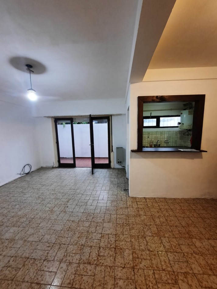 Departamento dos ambientes en planta baja con patio propio. Cocina semi integrada . Habitación con placard y baño completo con bañera . Gas natural . Expensas incluidas . $550.000 con aumentos casa 3 meses por ipc . Máximo 2 personas sin mascota. Ubicado en avenida Fortunato de la plaza 4741 barrio Juramento