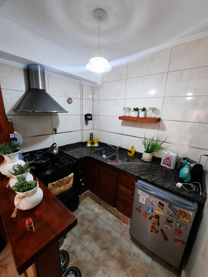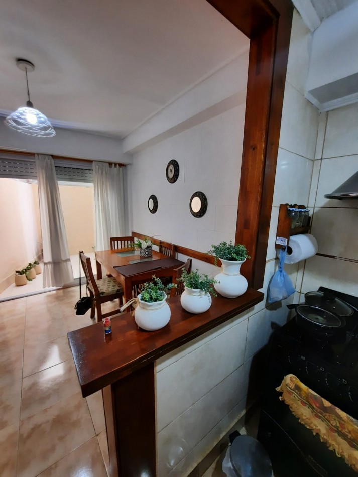 Consta de departamento primer piso con dos patios luminosos, comedor con cocina y barra, baño completo con ducha, habitación con placard empotrado , lavadero o dependencia de servicio con salida al patio.