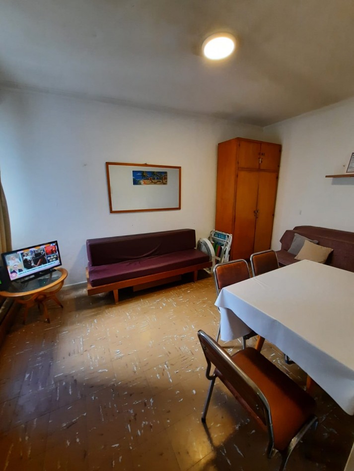 Monoambiente interno en 4to piso, a 1 cuadra del mar. Cuenta con 2 sofá cama, mesa con sillas, placard chico, TV. Cocina separada con heladera con freezer, microondas, horno eléctrico, termo eléctrico, pava eléctrica. Baño con ducha. NO tiene gas. WIFI y cable.