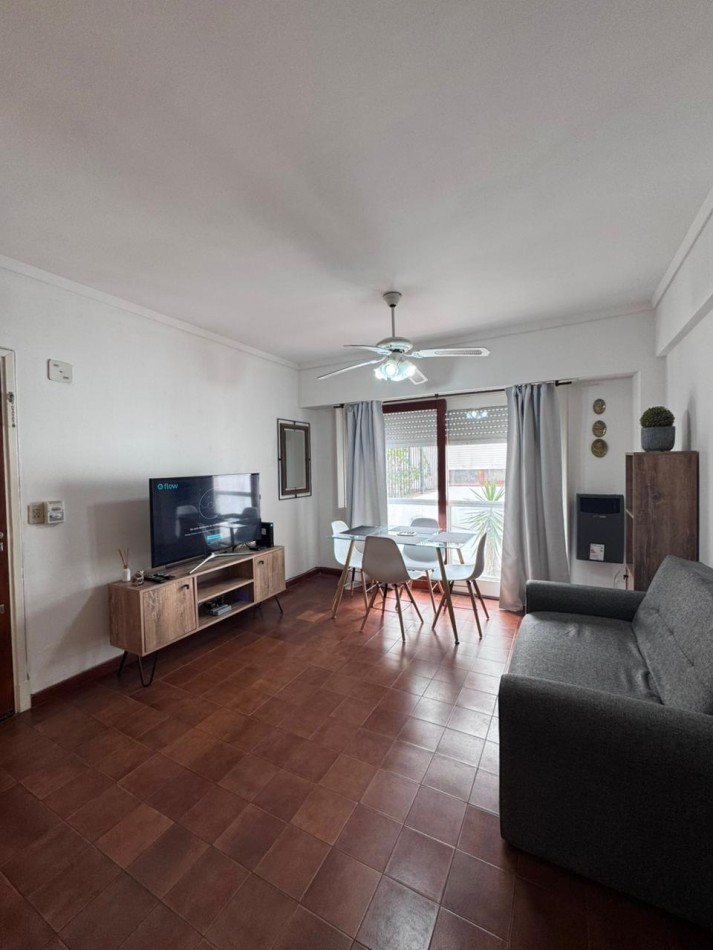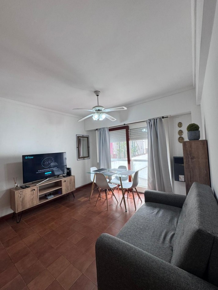 Living comedor con sofá cama, mesa y sillas, mesada con TV y placard. Calefacción por tiro balanceado. Cocina separada y baño completo.