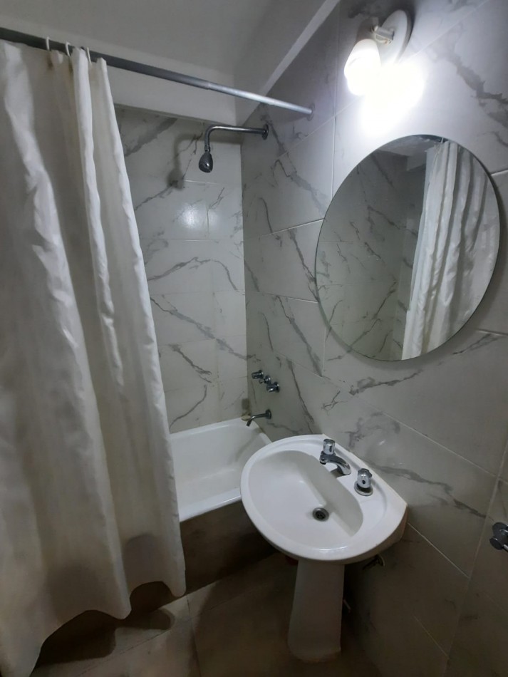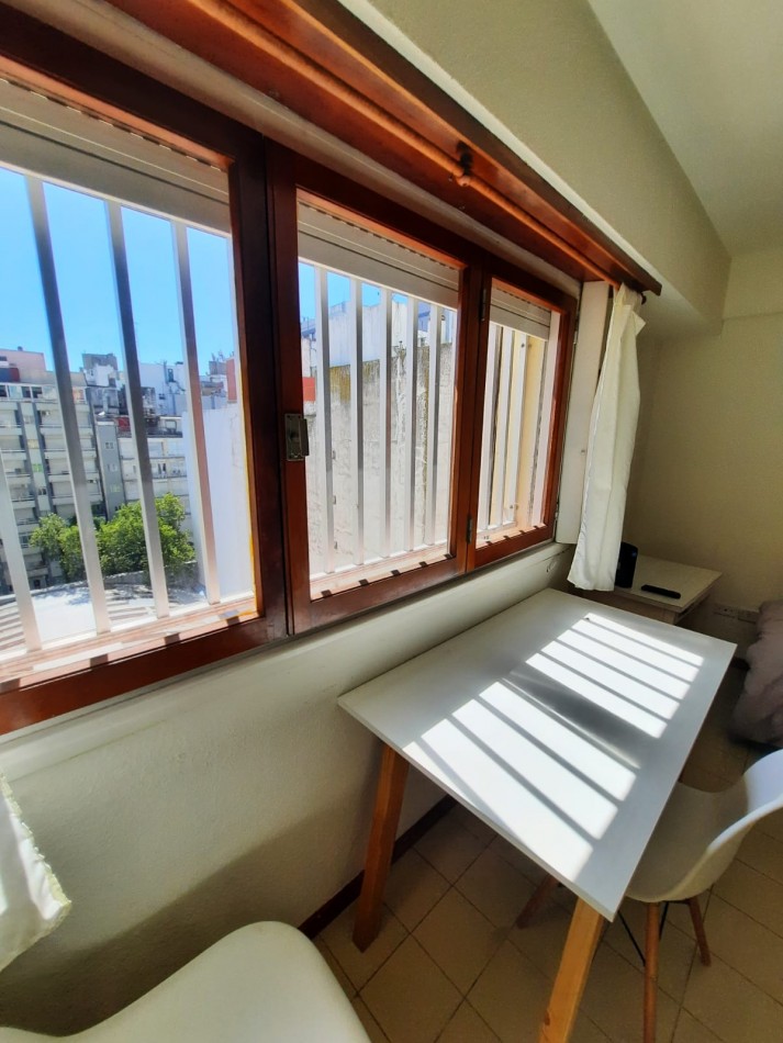 Monoambiente al contrafrente, super luminoso y soleado, cuenta con 2 camas de una plaza, mesa y sillas. TV 32 pulgadas. Cocina separada con heladera con freezer, cocina a gas, pava eléctrica. Baño completo con bañera reciclado. WIFI y cable.
