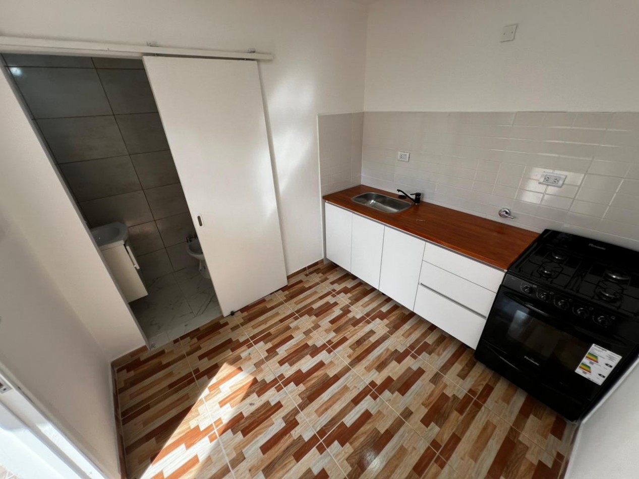Ambiente con calefacción. Cocina con mesada y bajomesada, cocina a gas a estrenar. Baño completo con ducha.