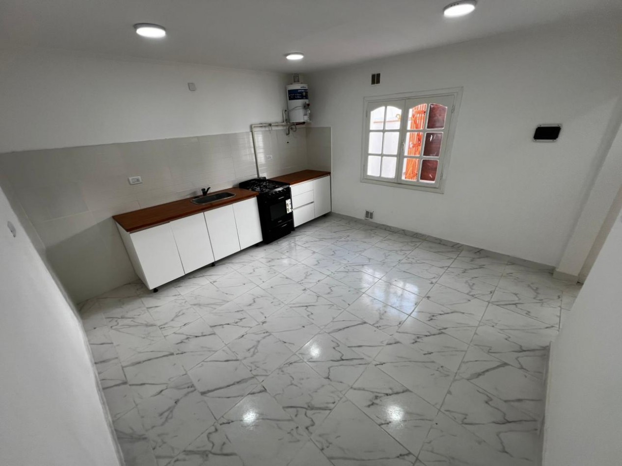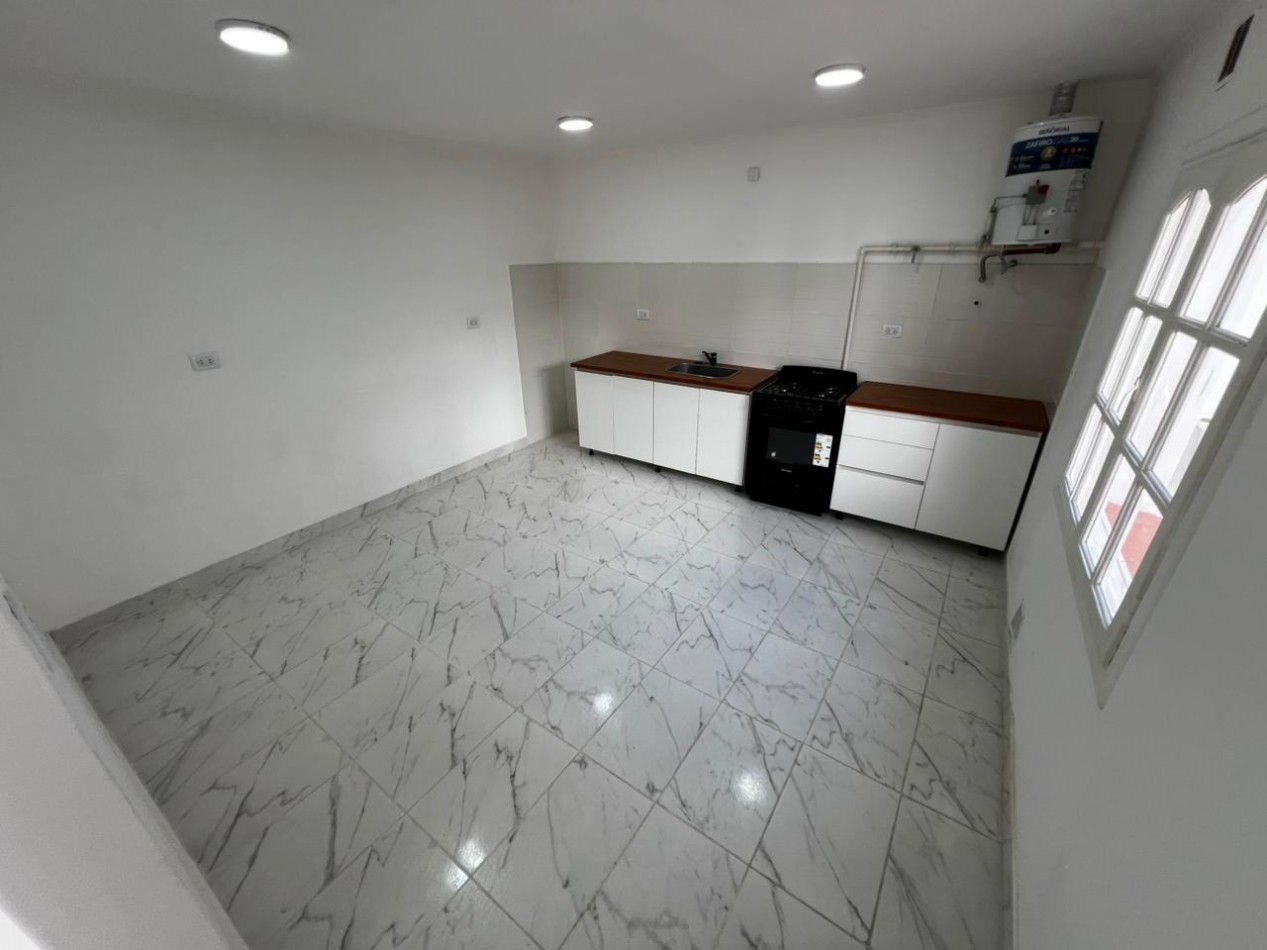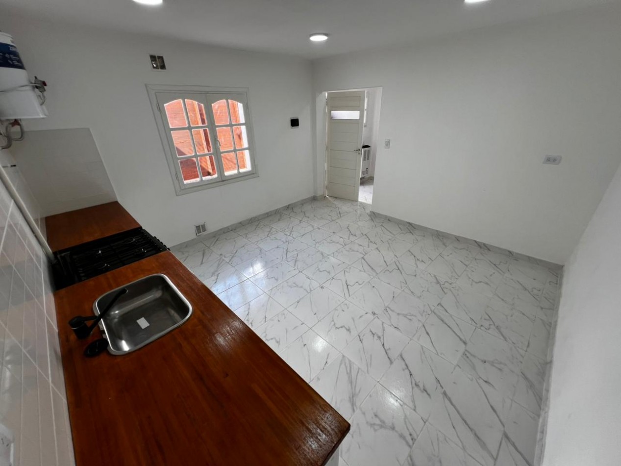 Ambiente con cocina integrada con mesada y bajomesada, cocina a gas a estrenar, termotanque nuevo. Pasillo de distribución con calefacción. Habitación separada con placard. Baño completo con ducha.