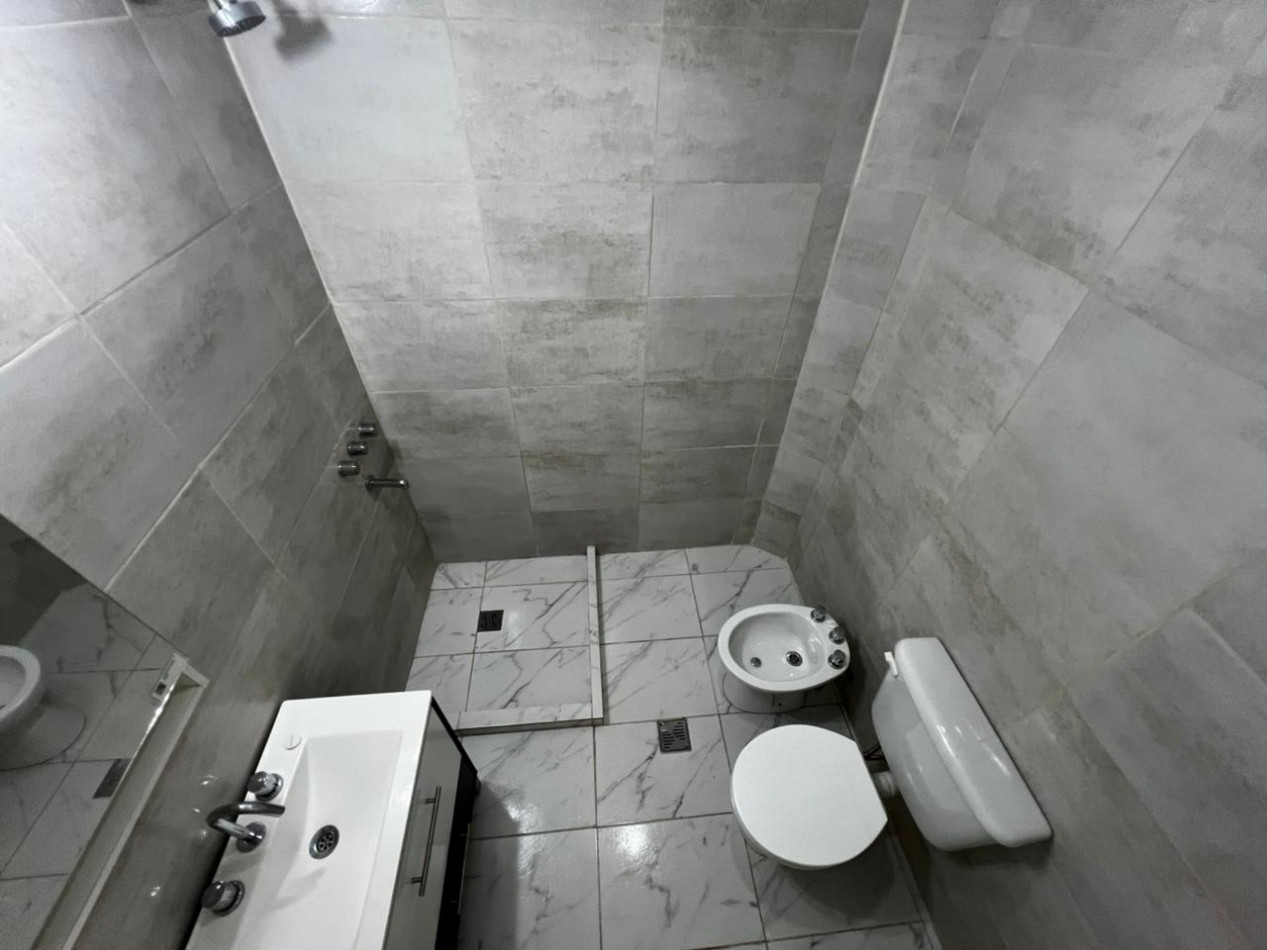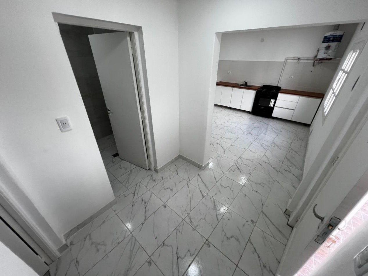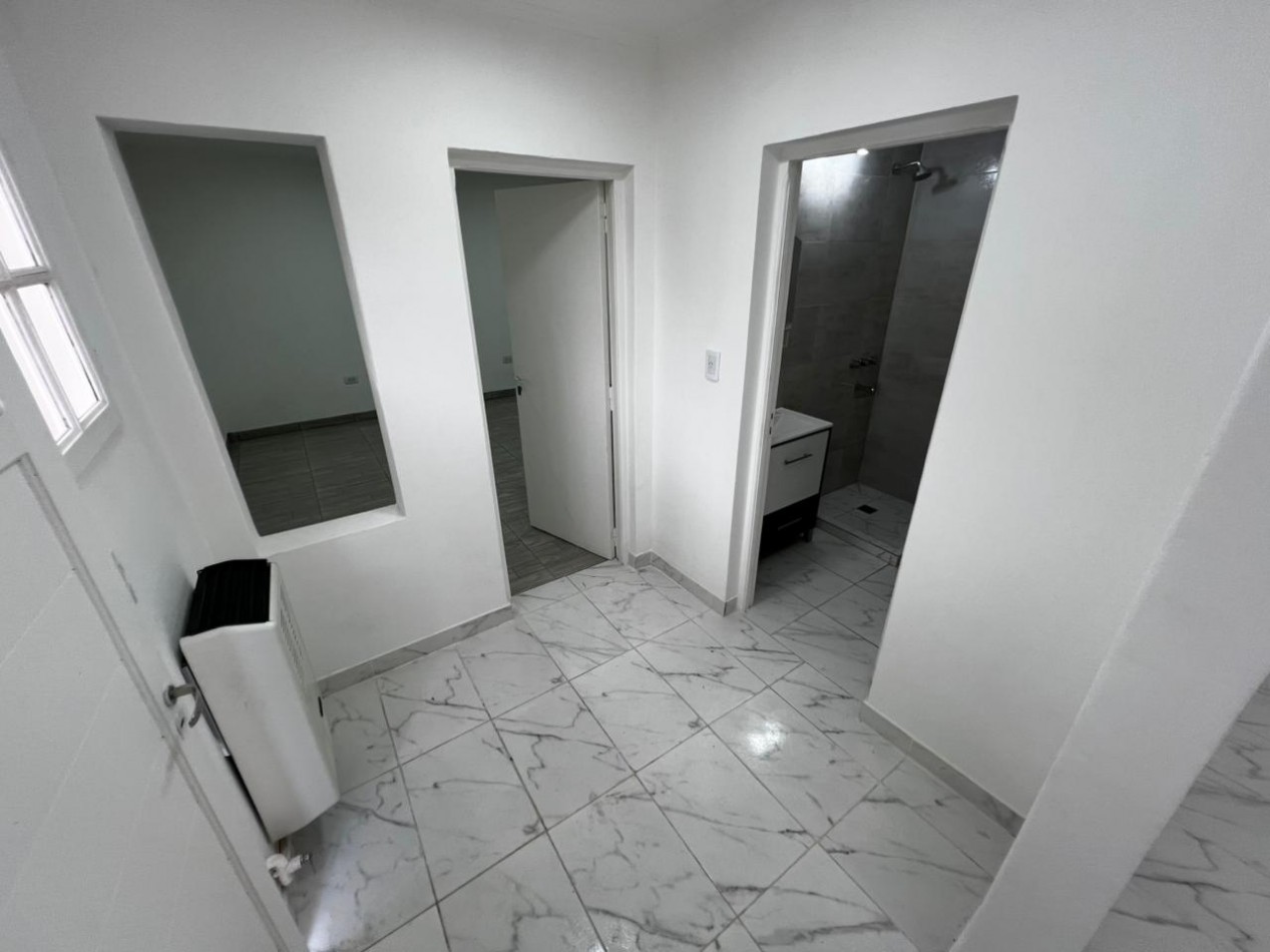 Ambiente con cocina integrada con mesada y bajomesada, cocina a gas a estrenar, termotanque nuevo. Pasillo de distribución con calefacción. Habitación separada con placard. Baño completo con ducha.