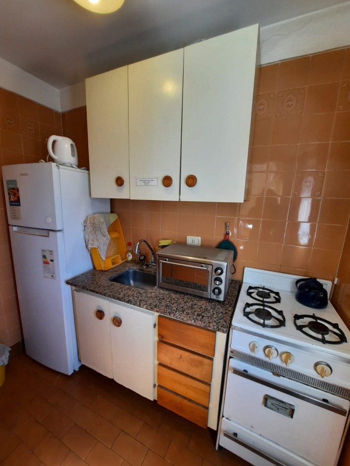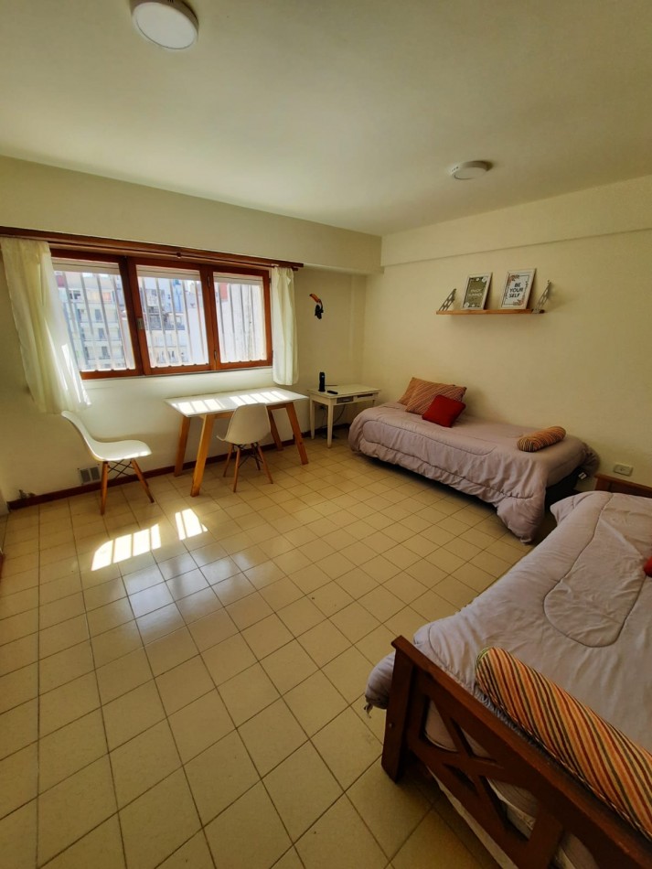 Monoambiente al contrafrente, super luminoso y soleado, cuenta con 2 camas de una plaza, mesa y sillas. TV 32 pulgadas. Cocina separada con heladera con freezer, cocina a gas, pava eléctrica. Baño completo con bañera reciclado. WIFI y cable.