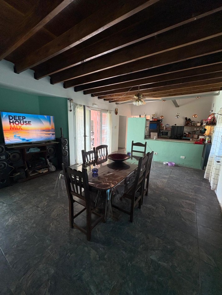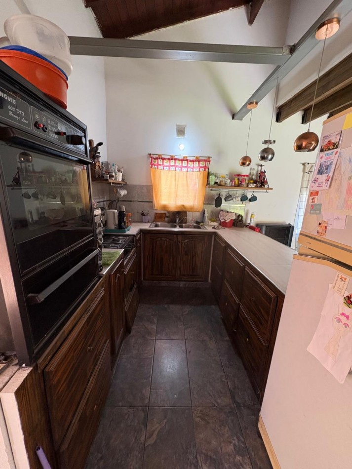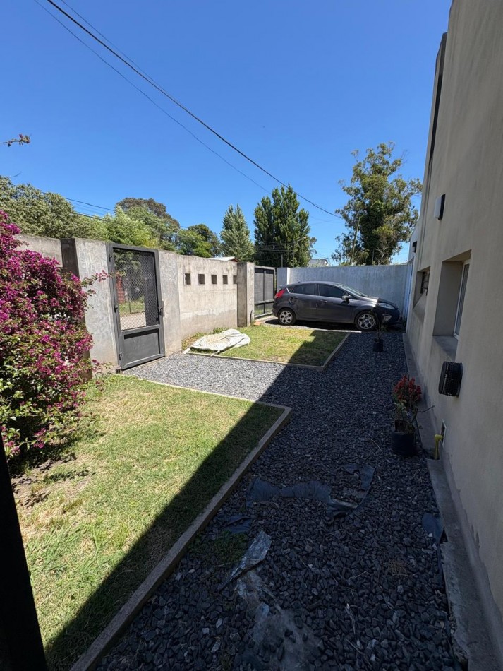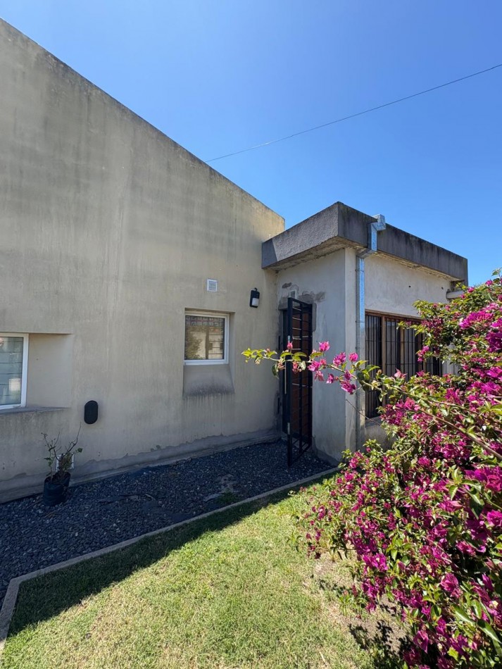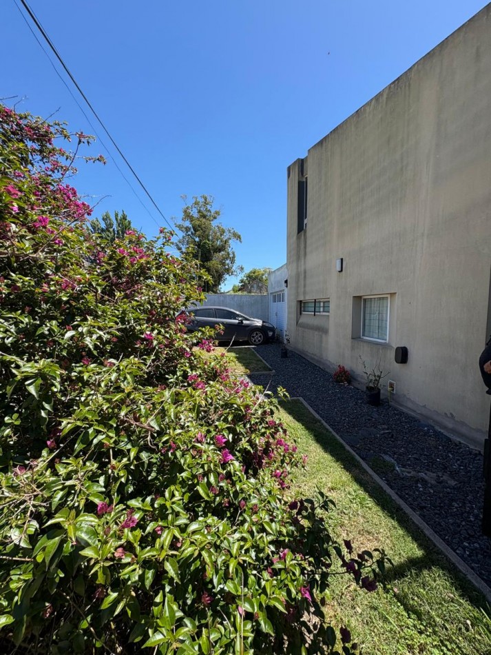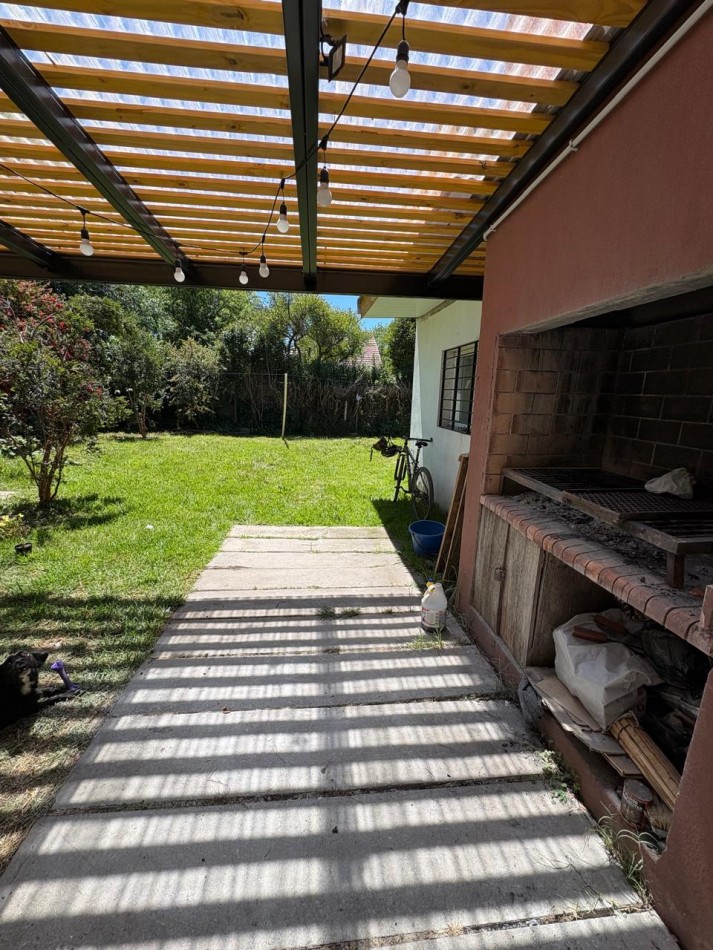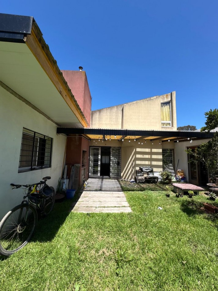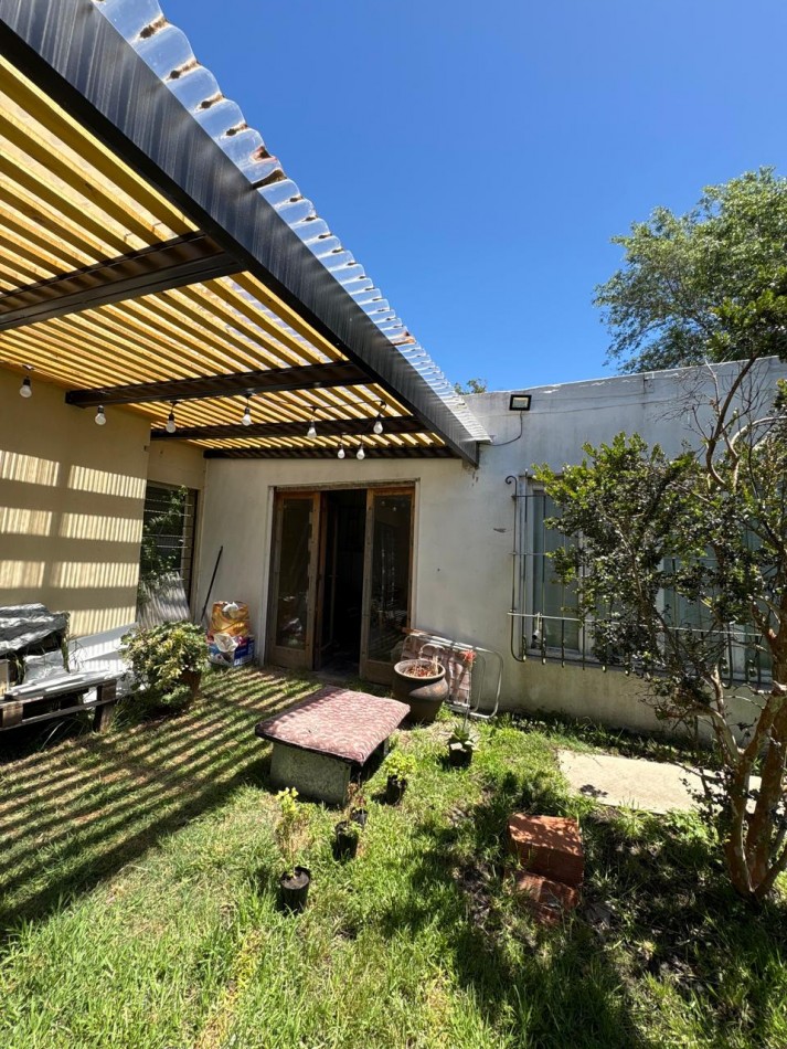Casa en lote propio con retiro al frente y paredones con portón para ingreso de 1 auto en trotadora y garaje cubierto para 1 auto, la casa consta de living con salida al patio, cocina comedor semi integrada, habitación amplia con vista al parque y baño completo con ducha, patio con techo estructural para sector de Reunión frente a la parrilla, parque de buenas dimensiones, habitación de servicio o cuarto de guardado, en planta alta: 2 habitaciones.